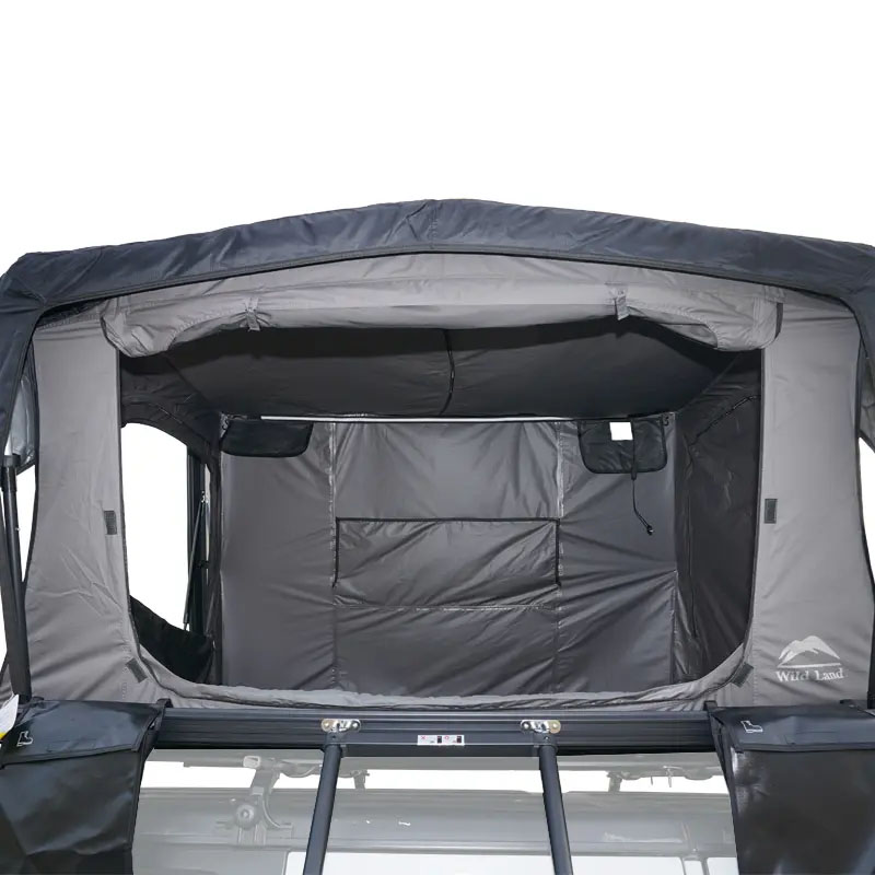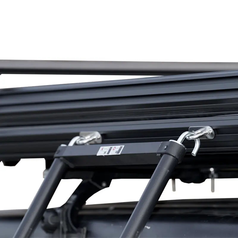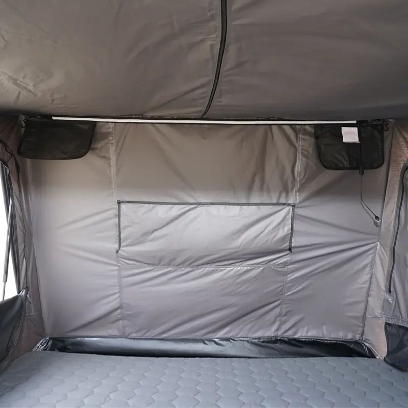 Conçue avec un profil ultra-fin de seulement 18 cm de hauteur totale, sa structure et son cadre en aluminium autoportant répartissent le poids plus efficacement et allègent l’ensemble. Brétema offre une surface intérieure généreuse, idéale pour accueillir jusqu’à 2 adultes et 1 enfant. Notre tente de toit BRÉTEMA 140 est équipée de deux barres de chargement pour transporter jusqu’à 75 kg de charge sur le cadre. Ajoutez-y un vélo, un kayak, un coffre de rangement, etc. Grâce à son ouverture automatique avec amortisseurs et 4 attaches rapides, elle s’ouvre et se ferme en moins d’une minute !