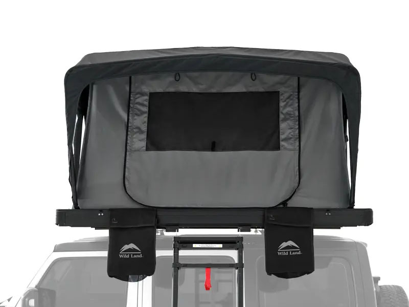 Elle s’ouvre facilement en tirant l’échelle fixée en haut de l’armature. Cette tente a passé avec succès les tests de résistance au vent et à la pluie de niveau 7, garantissant une utilisation sûre par tous les temps. Des barres de toit peuvent également être installées pour transporter vélos ou planches de surf.